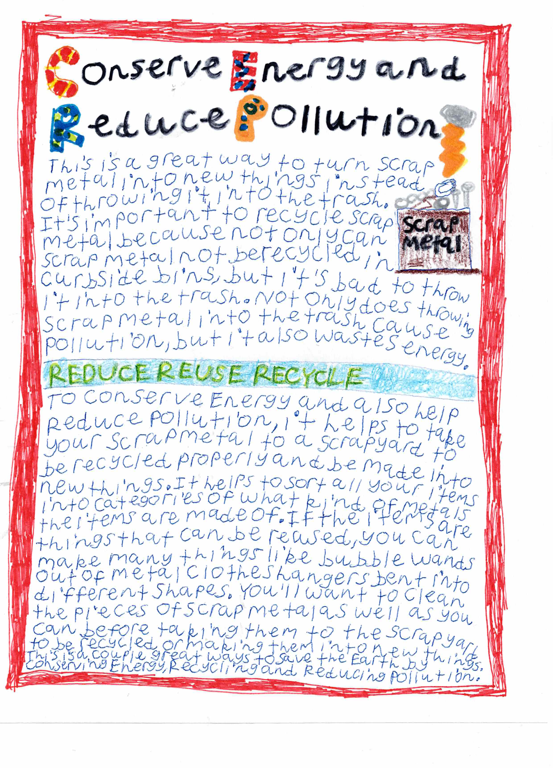 Recycling and reusing scrap metal is a kid and family friendly way to help Save the Earth because not only are you recycling and reusing things, but you’re also reducing pollution by keeping scrap metal out of the trash can and you’re also helping to conserve energy all at the same time. It also helps so that scrap metal can be made into new things and you’re helping to keep all of these items out of the landfill and giving these materials another life and not putting them to waste or throwing them away in the trash which helps to conserve energy, reduce pollution and helps to protect the Earth and keep it clean, green, healthy and beautiful.